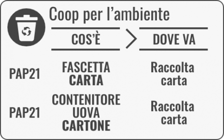 Dal 2007 COOP, per prima, ha iniziato a scrivere sulle etichette indicazioni sui materiali del packaging, per aiutare il consumatore nella raccolta differenziata. In questo modo si favorisce l’economia circolare e il riciclo dei materiali, centralizzando il ruolo del socio e cliente nel processo.
